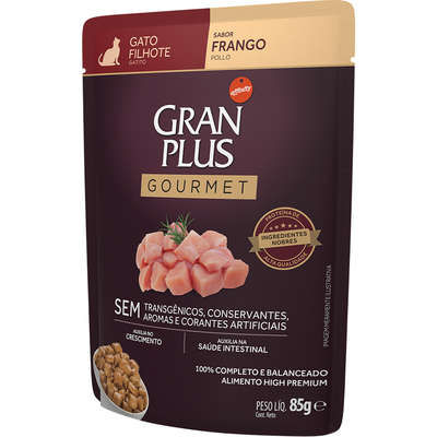 Ração Úmida GranPlus Sachê Gourmet Frango p/ Gato Filhote 85